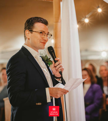 De trouwlocatie bleek een donkere setting te hebben. Voor veel fotografen is dat een uitdaging, maar als trouwfotograaf bij donkere locaties ben ik daar op voorbereid. Ik nam bewust studioapparatuur mee — en achteraf was ik daar erg blij mee. Het was zelfs nog donkerder dan verwacht, maar juist daardoor konden we de sfeer vasthouden en alsnog de beelden maken die Chiel & Natascha voor ogen hadden.
